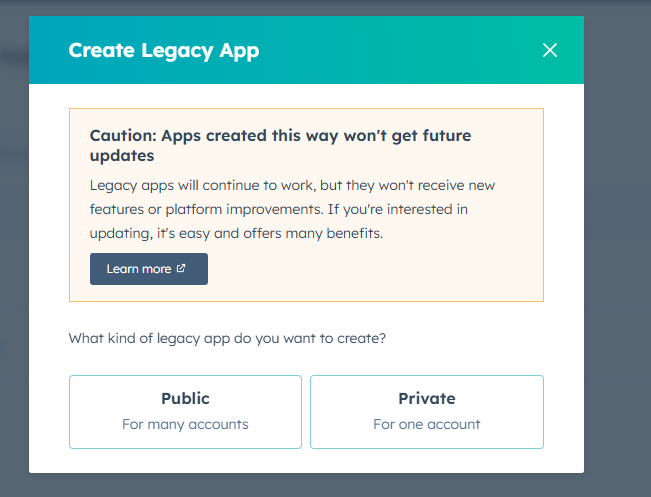 Click on the Create Legacy App button.